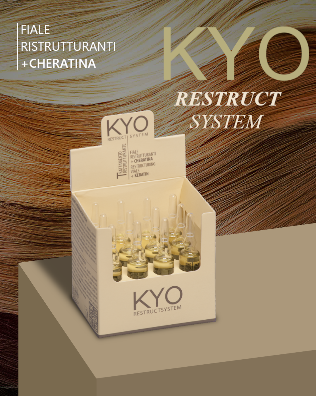 Lozione cheratinica Restruct System. Le fiale monodose contengono un complesso altamente concentrato di proteine della cheratina, che penetra istantaneamente nei capelli danneggiati, rigenerandoli, ristrutturandoli e districandoli. Fin dalle prime applicazioni, il capello risulterà nutrito in profondità, più forte ed elastico.