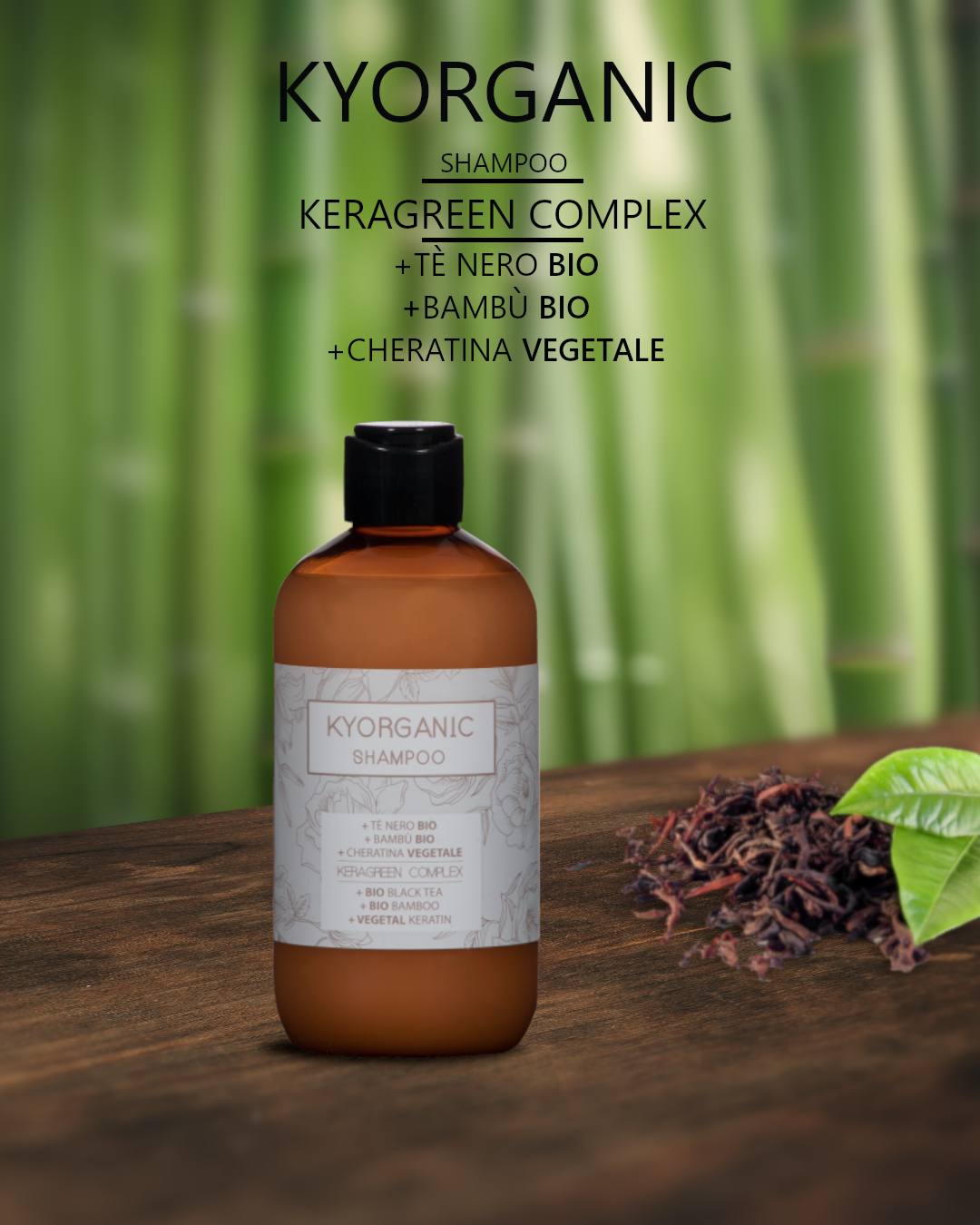 Shampoo sostantivante riequilibrante KYORGANIC senza SLS/SLES, formulato con ingredienti funzionali biologici, ad azione rigenerante. Arricchito con Bambù, The Nero, Cheratina Vegetale, assicura detersione, nutrimento a cute e capelli. La sua formula delicata lo rende ideale per una purificazione quotidiana.